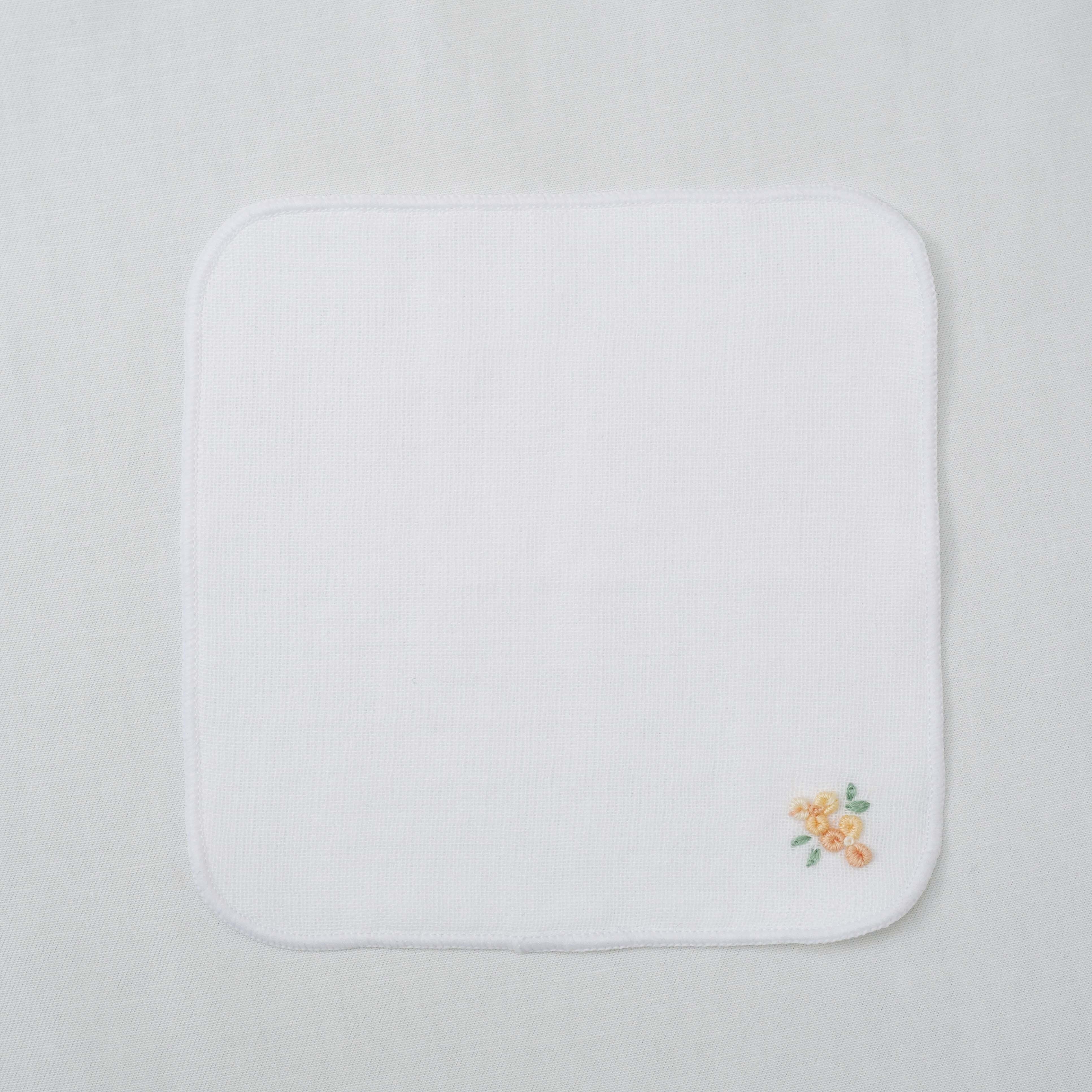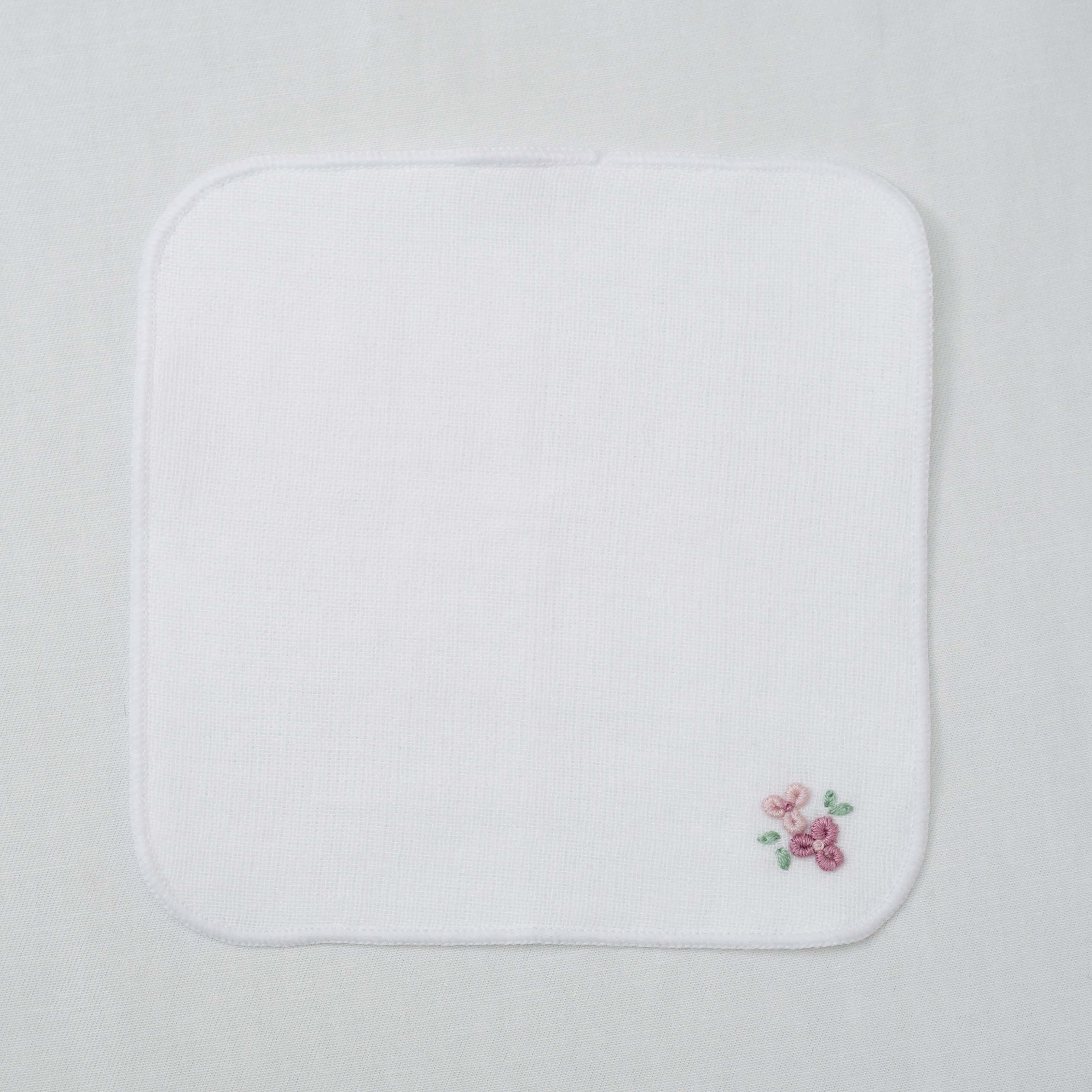 綿100%の日本製ハンカチに、丁寧に刺繍を施した、特別な一枚です。